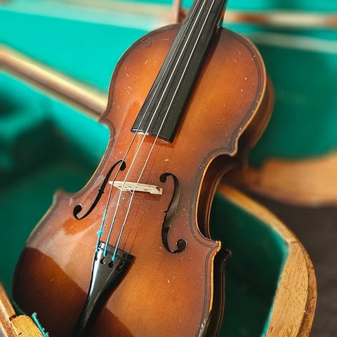 Vi købte den brugt for 1800 kr i 2016. Er brugt af 5-årig til violintimer på det Danske Suzuki Institut. Kan sikkert også bruges af 4-årig. Er i god stand med nogle få kosmetiske brugsspor (se billeder). Er i spilbar stand, men skal nok have nogle nye strenge. Bue følger med, samt original Suzuki kasse. God lyd, størrelsen taget i betragtning.