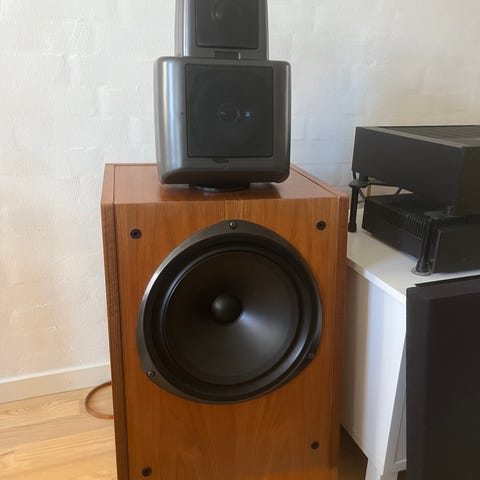 Klassiske velspillende højttalere, KEF's svar på Rogers LS3/5A. Fremstår velholdt, fremstår med enkelte brogsspor.