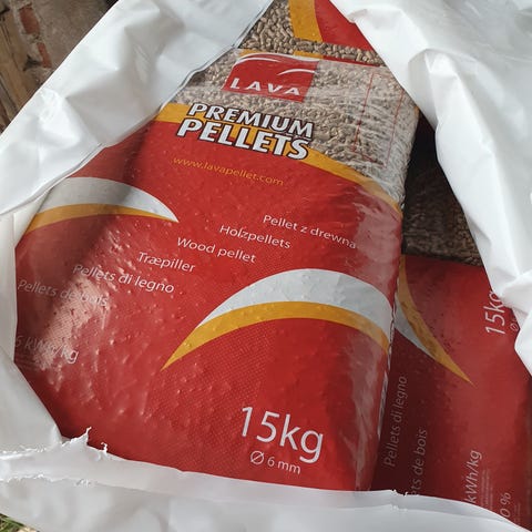 Vildbjerg Pellets træpiller i 16 kg sække 6mm.