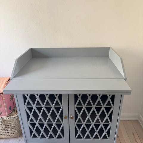 Købt i 2025 - vi er første og eneste ejere og det. Super flot stand, fremstår næsten som nyt pånær to pletter på udtræksskuffen - dette ses dog på ingen måde, da det er dér puslepuden ligger. Kan afhentes i 3100 Hornbæk eller leveres i København-området til kantsten for merpris.