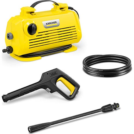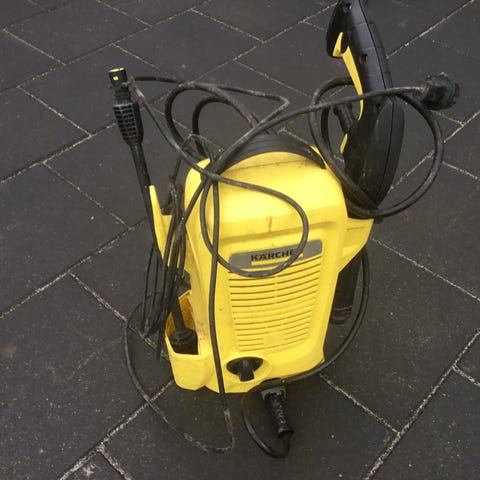 Kärcher højtryksrenser i gul og sort farve. Udformet til rengøring med højtryk, velegnet til forskellige overflader og udendørs brug.