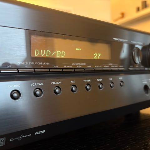 Receiveren er tung, velbygget og leverer god lydkvalitet – oplagt til film, spil eller som opgradering af et ældre anlæg.