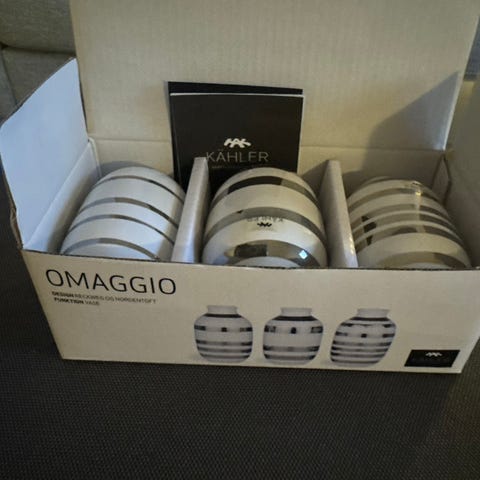 Gør et kup på dette fantastiske og komplette sæt af de ikoniske Kähler Omaggio vaser i den elegante perlemorsfarve!