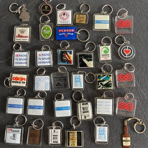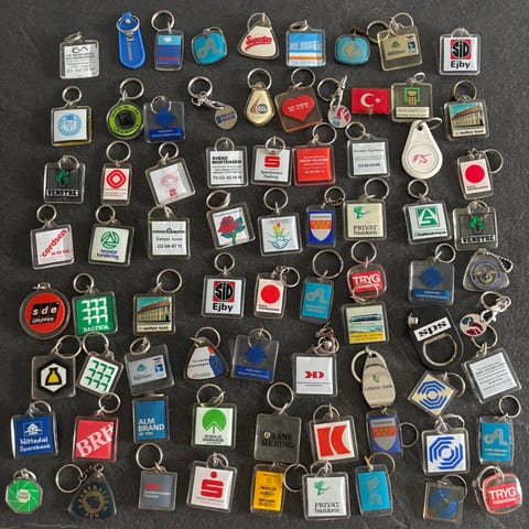 Maersk nøglering med blå baggrund og hvidt Maersk logo. Nøgleringen er fremstillet i plastik og metal og er velegnet til opbevaring af nøgler.
