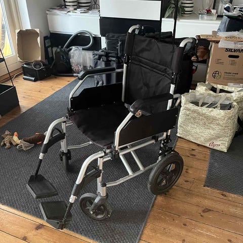 Transportkørestol med sort stel og stofsæde
