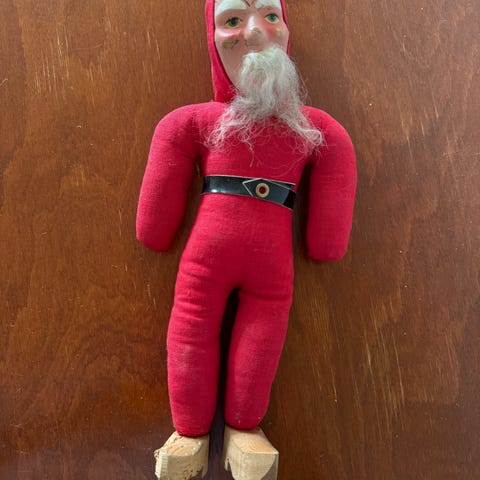 Udtryksfuld, rar gammel nisse med ståltrådskrop.