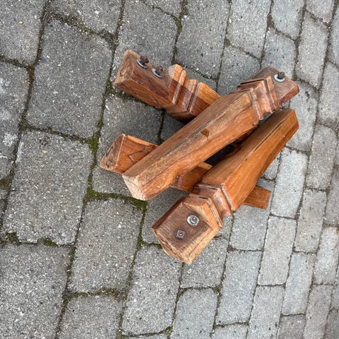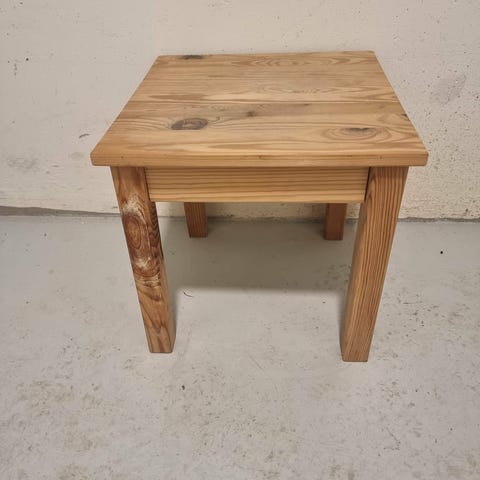 Træbord i naturligt træ med spiralformet ben. Bordet har en firkantet bordplade og en unik spiralformet støtte, der fungerer som ben. Bordet kan anvendes som sidebord eller dekorativt møbel i forskellige rum.
