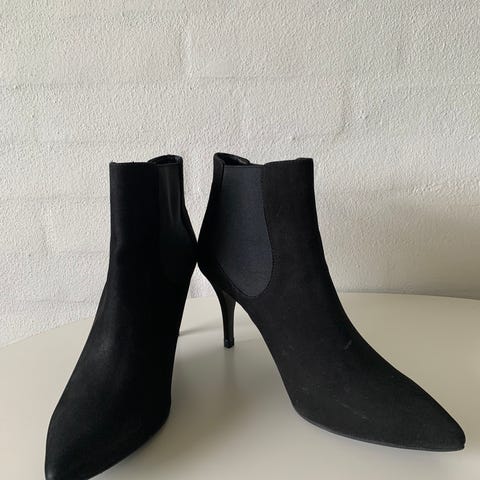 Elegant ankelstøvle - kun brugt en gang. Fremstår helt nye. Originalæske medfølger. Ca 8 cm hæl.