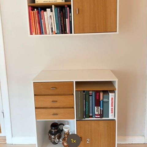 Reol er brugt og nederste plade i det ene modul har løsnet sig lidt.
