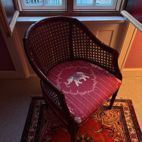 Smukt sæt vintage bambus stole med beige betræk samt lille tilhørende bord med to glas hylder. Bordet har en diameter på 56 cm og er 63 cm højt. Fejler intet og har ingen brugsspor. Fra et røgfrit hus uden kæledyr. Sælges samlet og prisen er for hele sættet.