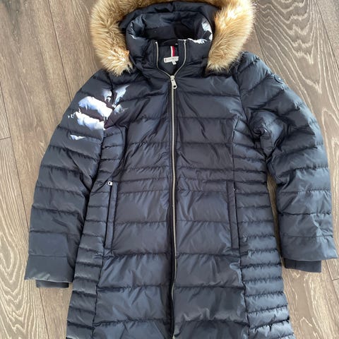 Tommy Hilfiger Vinterjakke til kvinder i størrelse M. Jakken er blå og designet til vinterbrug.