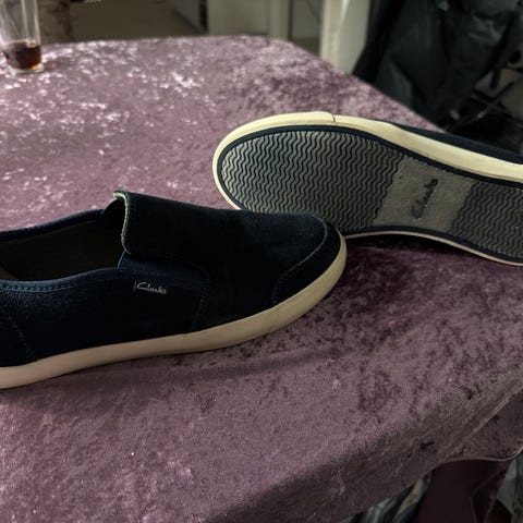 Clarks Originals loafers og sejlersko i størrelse 46. Skoene er sorte og lavet i ruskindsmateriale. Designet er klassisk med snørebånd og en robust sål. Velegnede til afslappet brug.