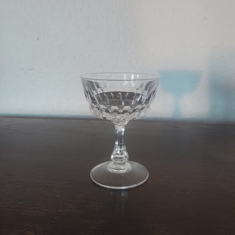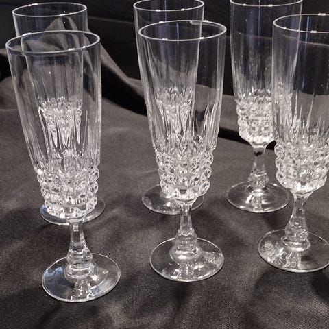 Pompadour hvidvinsglas fra franske cristal d'arc. Glassene er I ok stand, der er ingen skår eller afslag, heller ingen glaspest. Der er 6 stk I alt. Prisen er 50.kr pr stk eller alle 6 for 250kr. Varen kan sendes på købers regning. Se også mine andre opslag for flere pompadour glas.