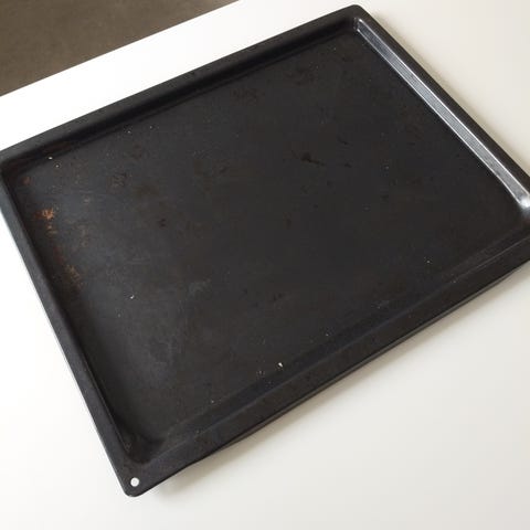 Bageplade med tilhørende rist i metal. Pladen måler ca. 46,3 cm i bredden.