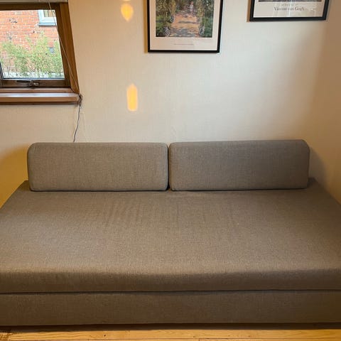 Står som ny. næste ikke brugt.sælges grundet pladsmangel.med aftagelige armlæn/ender. Udslået dybde 106 cm.