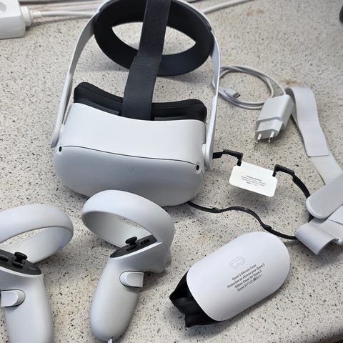 Meta Quest 2 headset og controllere.