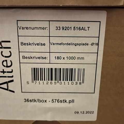 GT Floor Varmefordelingsplader med dimensionerne 16x180x1150 mm. Pladerne anvendes til varmefordeling og leveres i pakker med 30 stk.
