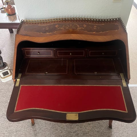 Antikt skrivebord med skuffer og klapbord