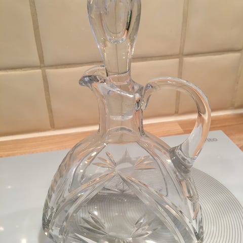Smuk karaffel i krystal. 28 cm høj. Flotte slibninger. Perfekt stand. Se også de øvrige annoncer med andre krystalting. Sender gerne. Du kan også hente i Fredensborg eller København. pn-172026.