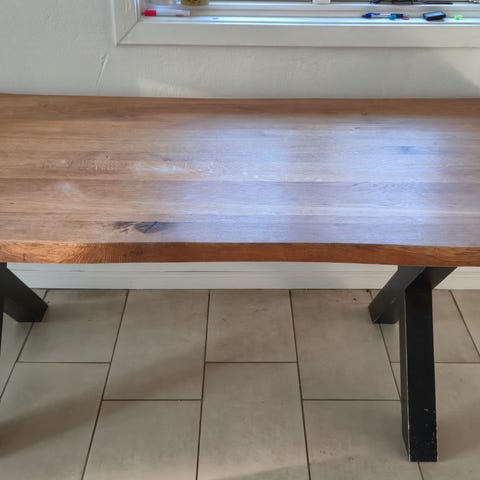 Ilva spisebord med bordplade i træ og stel i metal. Bordet har et robust design med en mørk træoverflade og sort metalstel. Velegnet til spisestue eller køkken. Materialerne kombinerer naturligt træ og industrielt metal.