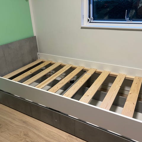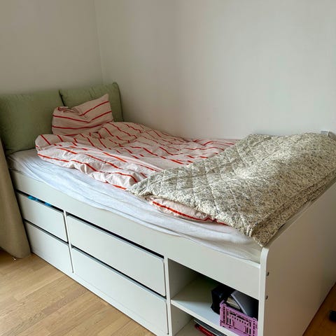 Jysk seng med opbevaringsskuffer i hvid