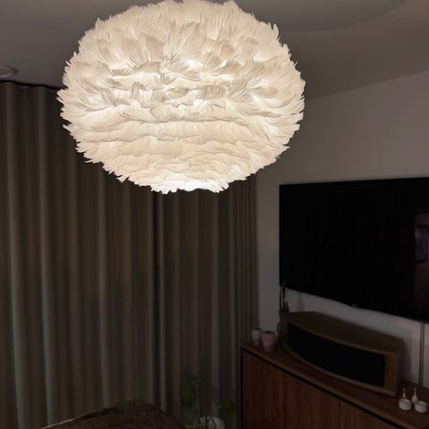 Stor loftslampe med hvide fjer