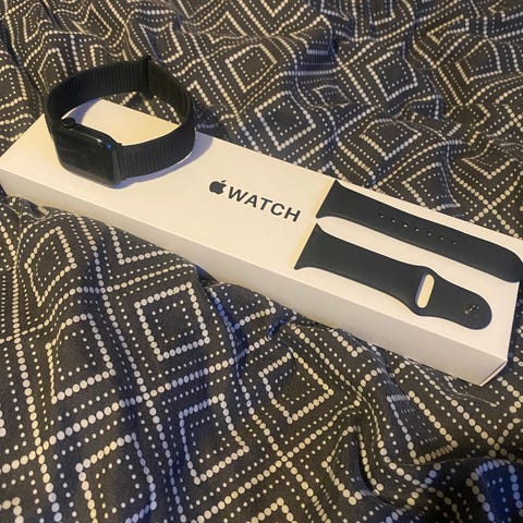Medfølger kasse og oplader. Original sportsrem medfølger ikke.