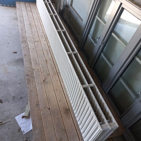 Ca 12 år gammel. Er skift pga. skifte til gulvvarme. Er i fint stand og fungerer fint. Har sat i stue og er uden ridser mv. Højde 21 cm, bredde 11 cm og længde 200cm. Skulle dække ca. 18 m2. Der følger 3 vægophæng med og termostat med.