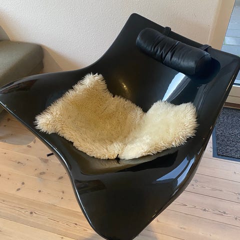 Fåreskind og gulvtæppe medfølger hvis ønsket.