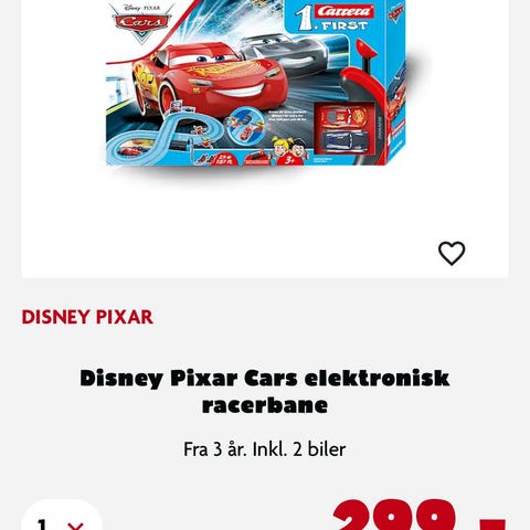 AI genereret: Disney Cars racerbane legetøj med elektrisk styring og to kontrolenheder. Inkluderer flere banestykker, herunder lige stykker, kurver og loop, som kan samles til forskellige baner. Designet til børn med tema fra Disney Cars filmene.