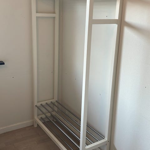 Praktisk garderobeskab med bøjlestang og en enkelt hylde over.