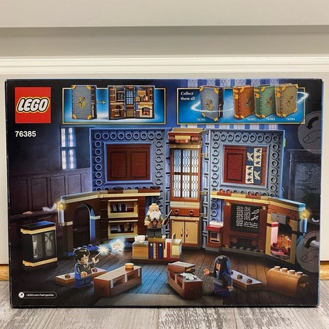 LEGO Harry Potter byggesæt formet som en bog med detaljerede indvendige rum og møbler. Sættet inkluderer tre minifigurer fra Harry Potter universet. Farverne er primært lilla, rød og orange. Materialet er plast, og produktet henvender sig til fans af Harry Potter og LEGO samlere.