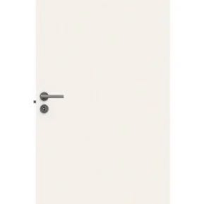 Swedor dør med tre paneler, designet til indendørs brug. Døren har to runde huller til håndtag og lås. Materiale og dimensioner er ikke oplyst.