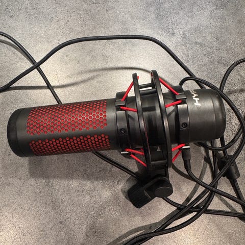 HyperX QuadCast USB-mikrofon: Rød/sort, inkl. shock mount. Perfekt til streaming, gaming og lydoptagelse. 4 optagemønstre. Virker fint.