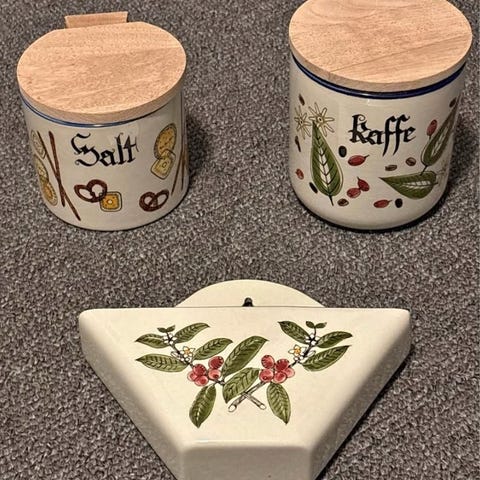 &Tradition glas krukke med mønster, metal låg og håndtag. Krukken har en gennemsigtig glasoverflade med indgraverede dekorative mønstre. Låget og håndtaget er lavet af metal, hvilket giver et funktionelt og dekorativt element. Velegnet til opbevaring eller dekoration.ca fra år 1900
