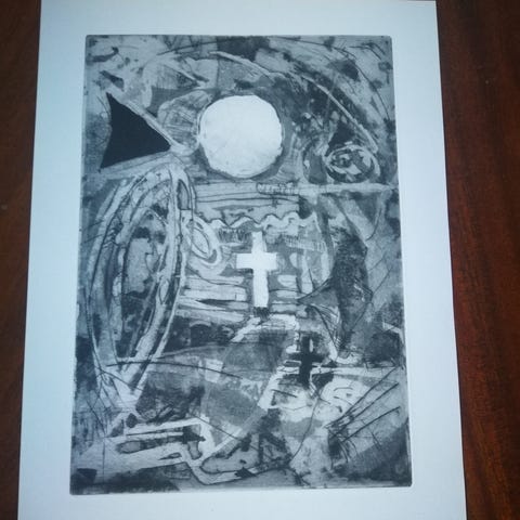 To fine tryk/litografi af Frank Rubin. Mål 17x23 cm