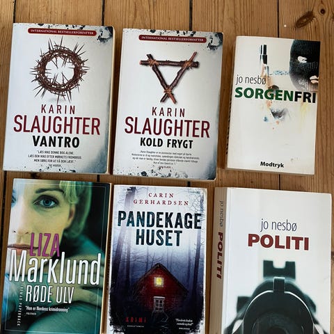 6 spændende krimier på engelsk. Sælges samlet.