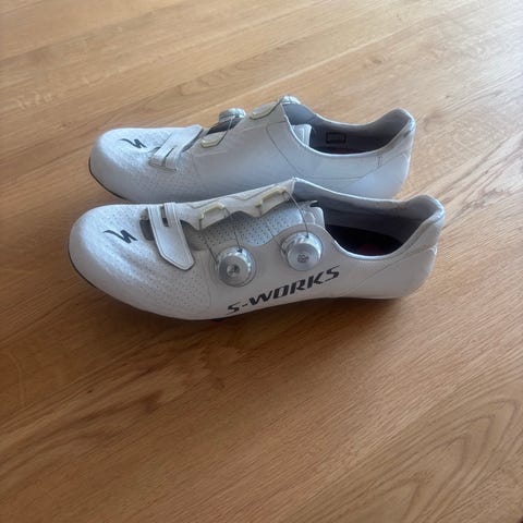 Superlet og velholdt landevejssko med stivhedsindeks 13.0 og 225 gram inkl. klampe. Købt i august 2020. Bortset fra nogle overfladiske skrammer under skoene, så er skoene meget velholdte og kun lidt brugte da de ikke er optimale til mine fødder. Lille i størrelsen. Jeg bruger normalt str. 44,5 - 45 i alm. sko. Nypris i august 2020, kr. 2.999,-