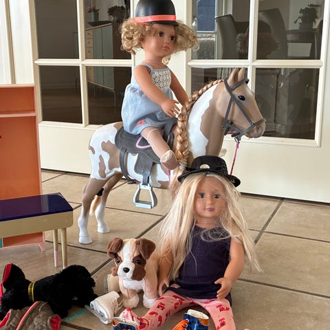 OG dukke med hest. Der medfølger ekstra sæt tøj.