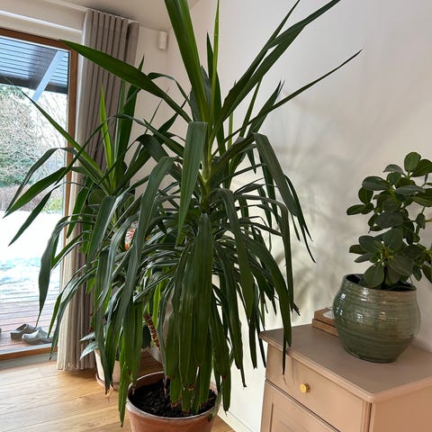 Stor sund Yucca palme, med 4 stammer, sælges med Terracotta krukke og underskål.