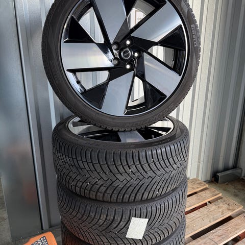 Sælger de her flotte originale Volvo alufælger med Michelin Helårsdæk til Volvo EX40/EC40 og XC40/C40 EL (Recharge). Fordæk 235/55r19 (5-5.5mm)og bagdæk 255/50r19 (5-5.5mm). Dæk er fra uge 48 år 22 (dot 4822). Ingen kantekys på fælger eller skader. Alm brugs ridser fra vaskehal kan forekome. Dækne er slidt lidt ude i kanterne pga dårlig sporing, se billeder. Ellers har de fint med mønster.
