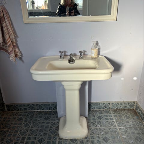 Lille Heritage håndvask i porcelæn. Designet med dekorativ kant og to huller til armatur. Velegnet til badeværelse.
