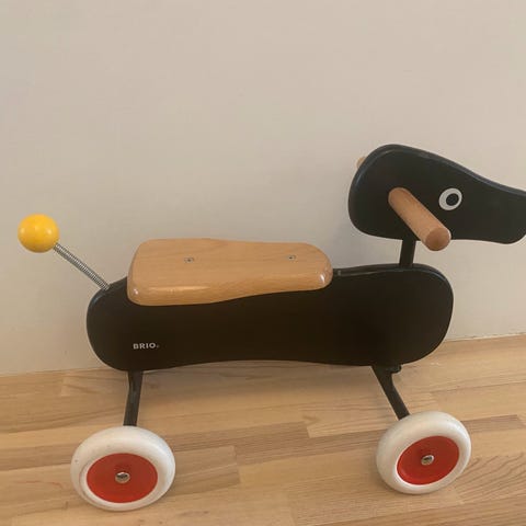 BRIO gåhund til de små. Er super god til at lære at gå og børnene kan komme hurtigt afsted. Har kun været brugt indenfor, så er i rigtig god stand.