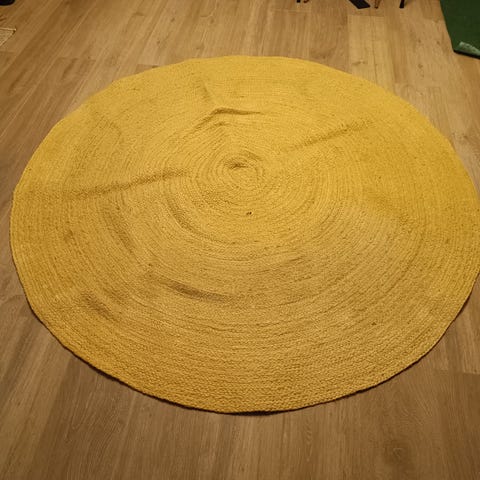 Rundt gulvtæppe i berige ø 250 cm. Der er en del pletter på.