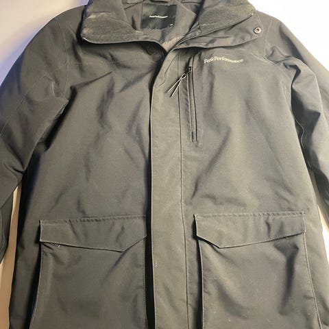 Peak Performance skijakke i sort til kvinder i størrelse L. Jakken er fyldt med dun, hvilket giver isolering og varme. Den har hætte og lynlås, og er egnet til udendørs brug. Der er stadig prismærke på, nypris 3000kr.