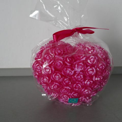 Har to hjerter formet lys og en uåbnet pakke sterinlys i rød farve