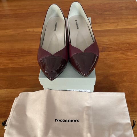 Roccamore ballerinasko i størrelse 39 i sort farve. Skoene har et dekorativt mønster på overdelen og en lav kilehæl. Egnet til dagligt brug. Kun brugt en enkelt gang.