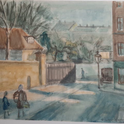 Carl Falbe Hansen: Bykvarter. Gouache på plade