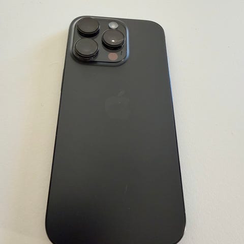 Apple iPhone 16 Pro smartphone med 512 GB lagerplads. Enheden har en normal batteritilstand med en maksimal kapacitet på 98 %. Fremstillingsdato er november 2024, og telefonen er først brugt i december 2024. Produktet leveres med tilbehør som covers og skærmbeskyttere. Ledning til oplader og kvittering fra TDC erhverv.