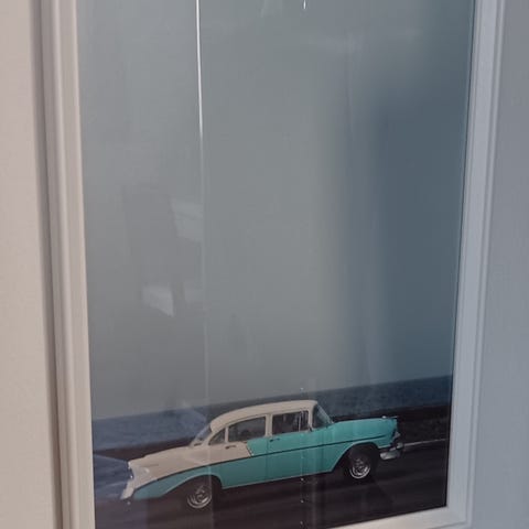 IKEA dekorationsplakat med motiv af en rød dobbeltdækkerbus i London. Plakaten er sort/hvid med farvet bus og viser en byscene med trafikskilte og bygninger. 100x140 inkl ramme